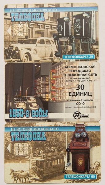 • Telecartofilia. Fenômeno de colecionismo entre meados dos Anos 80 até 2010. Rússia. 3 peças.