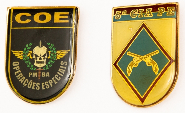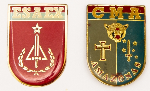 • Militaria, Brasil. Distintivos de bolso em metal e esmaltes 45x32 mm. 2 Peças.