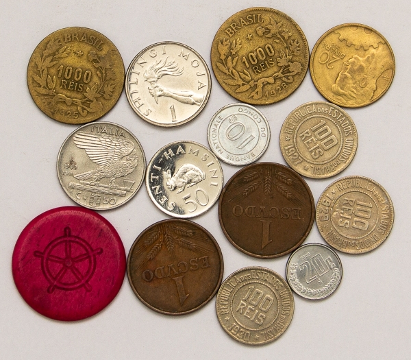 • Numismática, Espanha. Provisional. 6 Peças Lastreadas com selos.