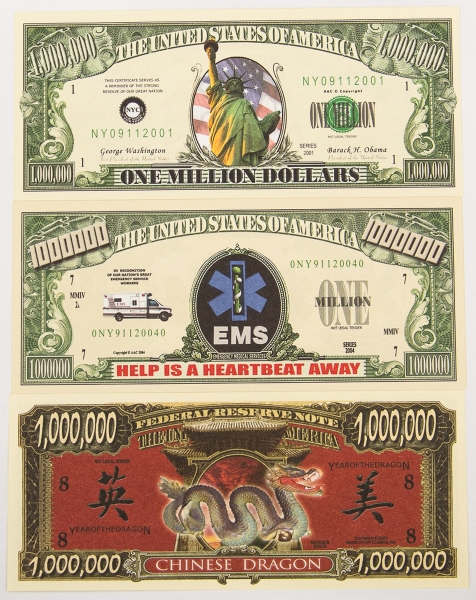• Numismática, USA. 3 Cédulas de Fantasia. Muito apreciadas por suas temáticas.