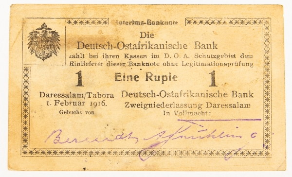 • Numismática, África Alemã. 1 Rúpia 1916. Daressalam/Tabora.