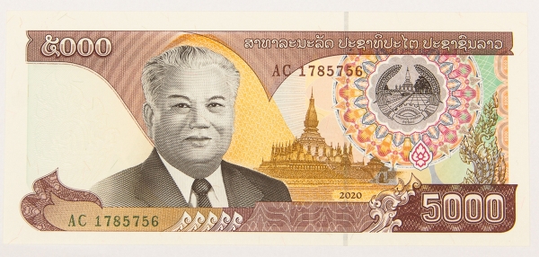 • Numismática, Laos. 5000 Kip 2020. Flor.