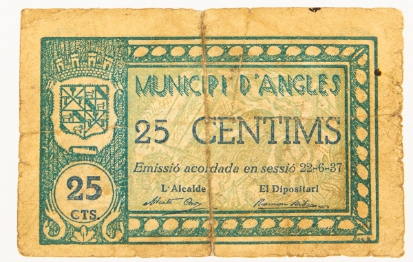 • Numismática, Espanha. Período Revolucionário 1937. 25 Centins. 1937. Dangles.