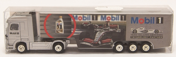 • Modelismo. Magnífico exemplar de Caminhão de origem Alemã. Grande riqueza de detalhes. Promocional. Não se encontra comercialmente. Raro e com alta procura e crescente cotação na Europa em especial datas e eventos. Temático. Escala 1:87 HO. Mobil - HacLaren Mercedes.