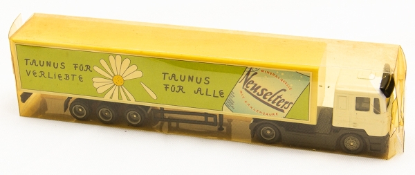 • Modelismo. Magnífico exemplar de Caminhão de origem Alemã. Grande riqueza de detalhes. Promocional. Não se encontra comercialmente. Raro e com alta procura e crescente cotação na Europa em especial datas e eventos. Temático. Escala 1:87 HO. Água Mineral.