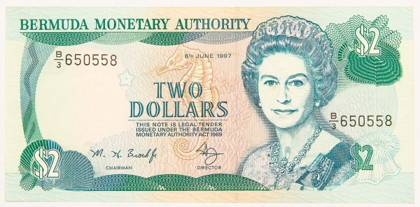 • Numismática, Bermudas. 2 Dollars 1997. Flor.