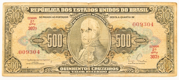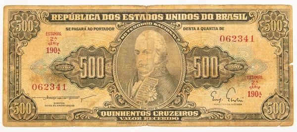 • Numismática, Brasil. 500 Cruzeiros C100. 1955.