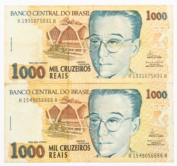 • Numismática, Brasil. 1000 Cruzeiros Reais. 2 peças.