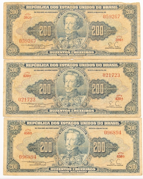 • Numismática, Brasil. 200 Cruzeiros. 3 peças.
