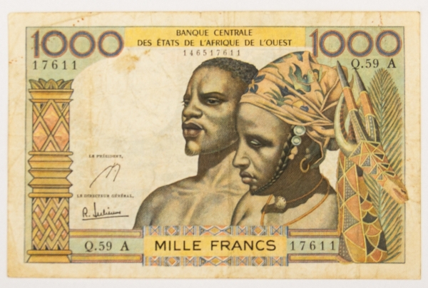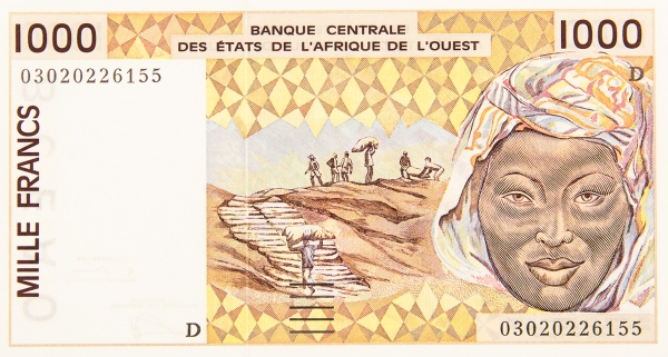 • Numismática, Mali. 1000 Francos da África Ocidental. Flor de Estampa.