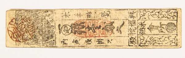 • Numismática, Japão. Raríssimo Hansatsu. Século XVIII. Período EDO. Os domínios feudais emitiram uma moeda escritura chamada Hansatsus para circular dentro de seus domínios 152x35 mm.