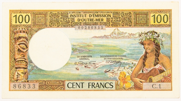 • Numismática. Papeete com furos de Alfinete e pequena ruptura 1,5 cm abaixo do cent. (esquerda).