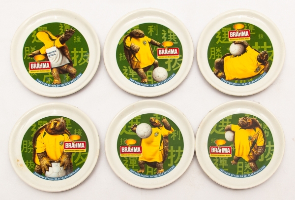 • Colecionismo - Kit com6 porta copos em porcelana da BRAHMA , Tartarugas torcedor oficila da seleção Brasileira - 2002