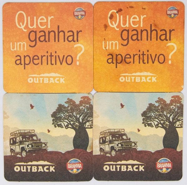 • Colecionismo - Dois pares de Bolachas do Restaurante OUTBACK - Cervejaria Brahma  e pesquisa de Satisfação