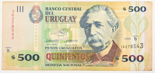 • Numismática, Uruguai. 500 Pesos, P. 82, MBC.
