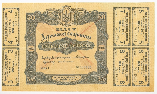 • Numismática, Ucrânia. 50 Hryven P. 12, MBC.