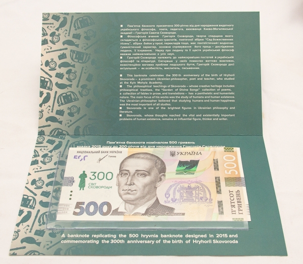 • Numismática, Ucrânia. 500 Hryen. P. 132 P, Fe com folder.