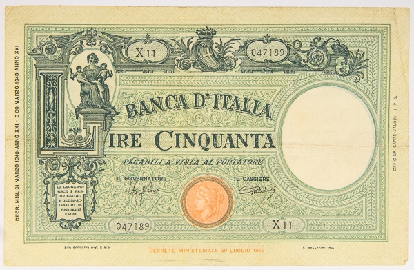 • Numismática, Itália. 50 Liras, P. 64, MBC.