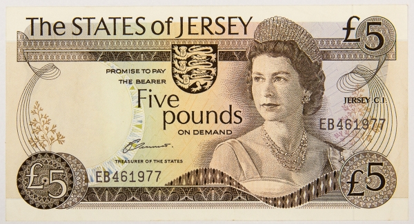 • Numismática, Jersey. 5 Libras, P. 12 A, MBC.