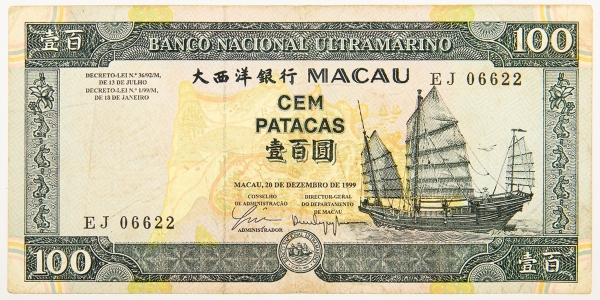 • Numismática, Macau. 100 Patacas, P. 73, MBC.
