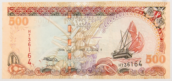 • Numismática, Maldivas. 500 Rufiyas, P. 24 A, Fe.