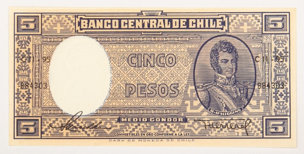 • Numismática, Chile. 5 pesos, P. 119, Fe.