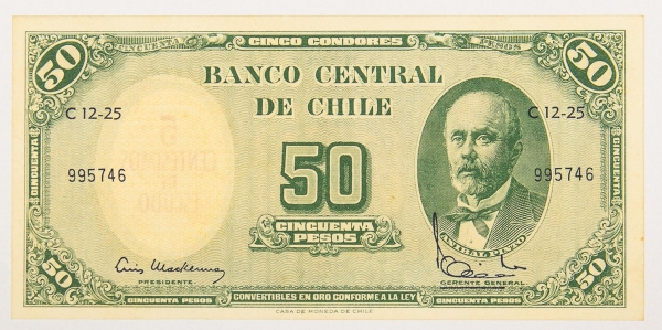 • Numismática, Chile. 50 pesos, P. 126, Fe.