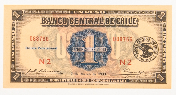 • Numismática, Chile. 1 peso, P. 88 b, Fe.