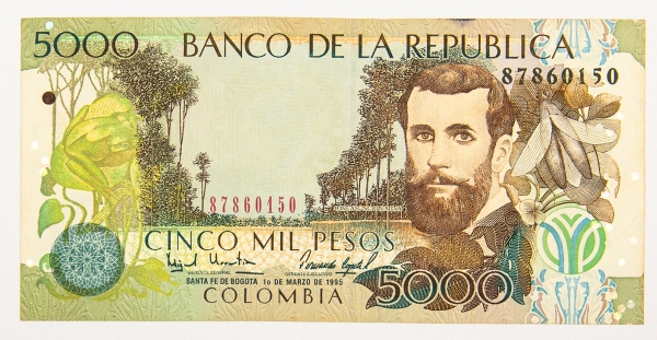 • Numismática, Colômbia. 5000 pesos, P. 441, MBC.
