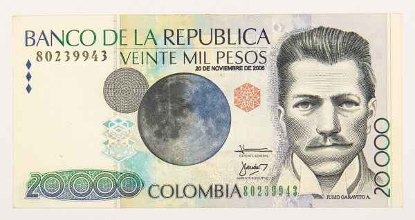 • Numismática, Colômbia. 20.000 pesos, P. 454M. Fe.