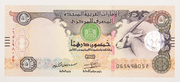 • Numismática, Dubai/Emirados Árabes. 50 Dirhams, P. 29 F, Fe.