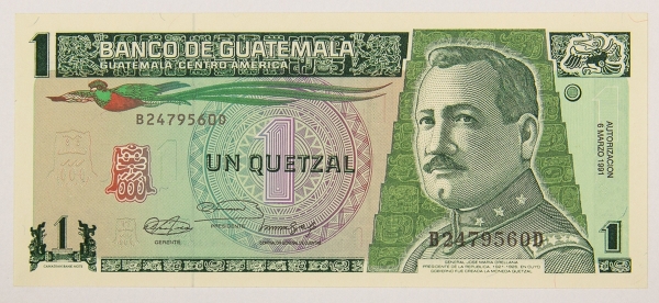 • Numismática, Guatemala. 1 Quetzal, P. 73 b, Fe.