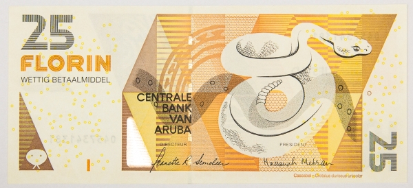 • Numismática, Aruba. 25 florins, P. 17 b, Fe.