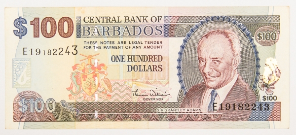 • Numismática, Barbados. 100 dólares, P. 65, MBC+