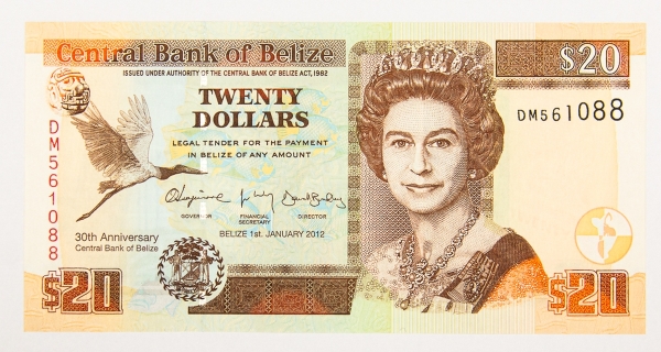 • Numismática, Belize. 20 dólares, P. 72, Fe.