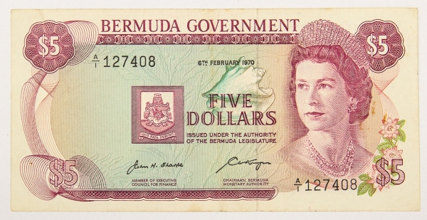 • Numismática, Bermudas. 5 dólares, 1970, P. 24, MBC+/XF.
