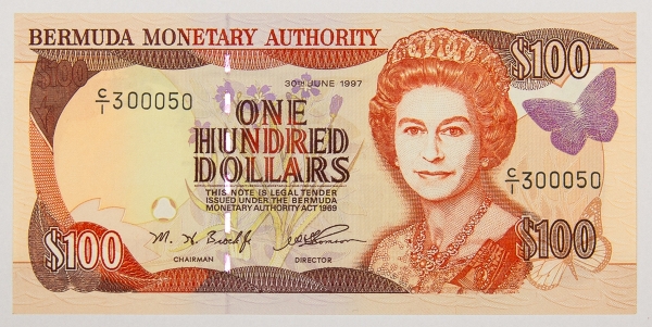 • Numismática, Bermudas. 100 dólares, P. 49, Fe.