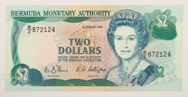 • Numismática, Bermudas. 2 dólares, P. 34, Fe.