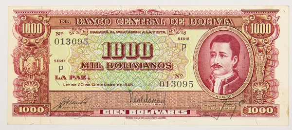 • Numismática, Bolívia. 1000 Bolivianos, P. 149, Fe.