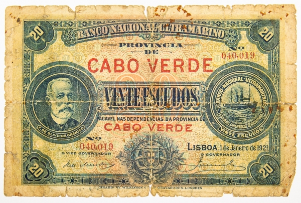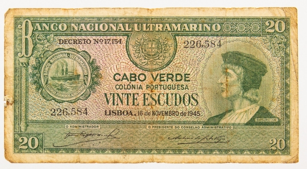 • Numismática, Cabo Verde. 20 escudos, P. 43, MBC.