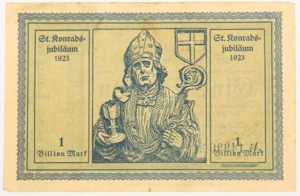 • Numismática, Alemanha. Cédula Hiperinflação de 1 Bilhão de Marcos 1923 Jubileu de São Conrado