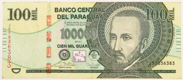 • Numismática, Paraguai. Cédula de 100 Mil Guaranis 2017 P-240