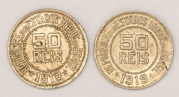 • Numismática, Brasil. 50 réis. 1918 - 1919.