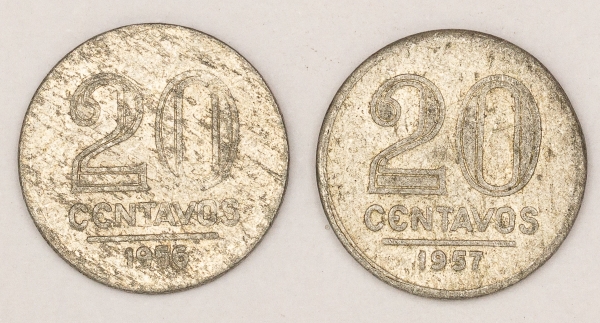 • Numismática, Brasil. 20 centavos 1957-1958.