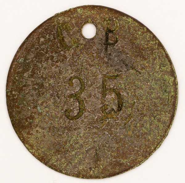 • Numismática. Antiga ficha particular com uso de moeda de cobre.