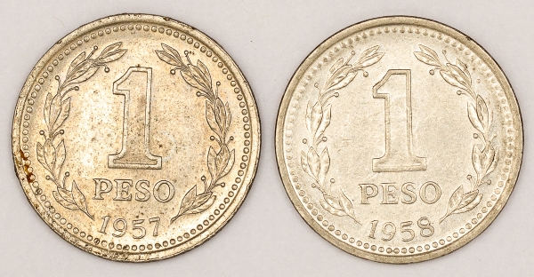 • Numismática, Argentina. 1 peso 1957-1958. Soberba. Flor de cunho.