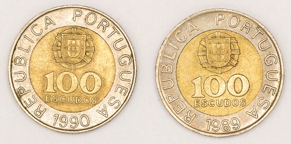 • Numismática, Portugal. 100 escudos 1989-1990. Bonitas.