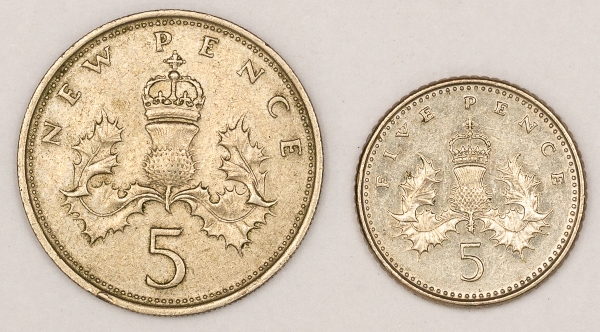• Numismática. 5 new pence 1970 - 1991. Perfeitas.