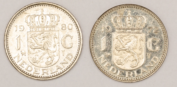 • Numismática, Holanda. 1 gulden 1972 - 1982. Lindas.