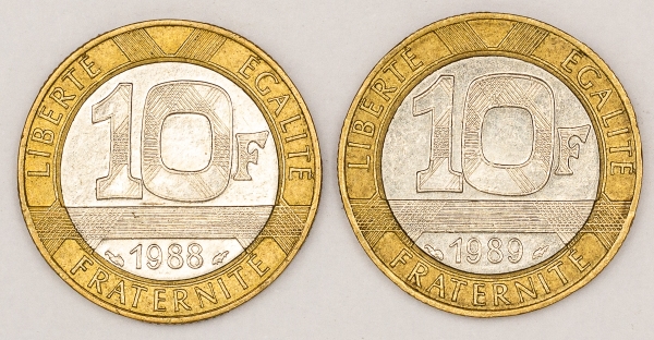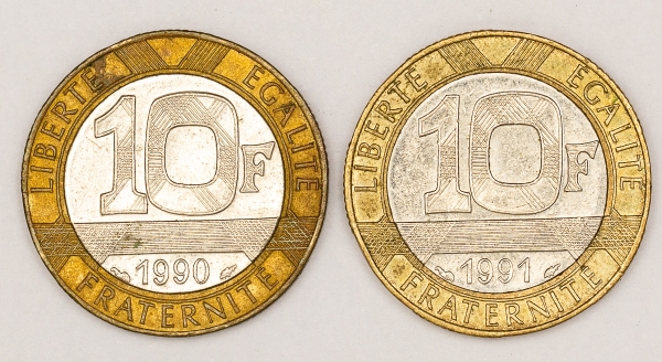 • Numismática, França. 10 francos 1990-1991. Soberba. Flor de cunho.